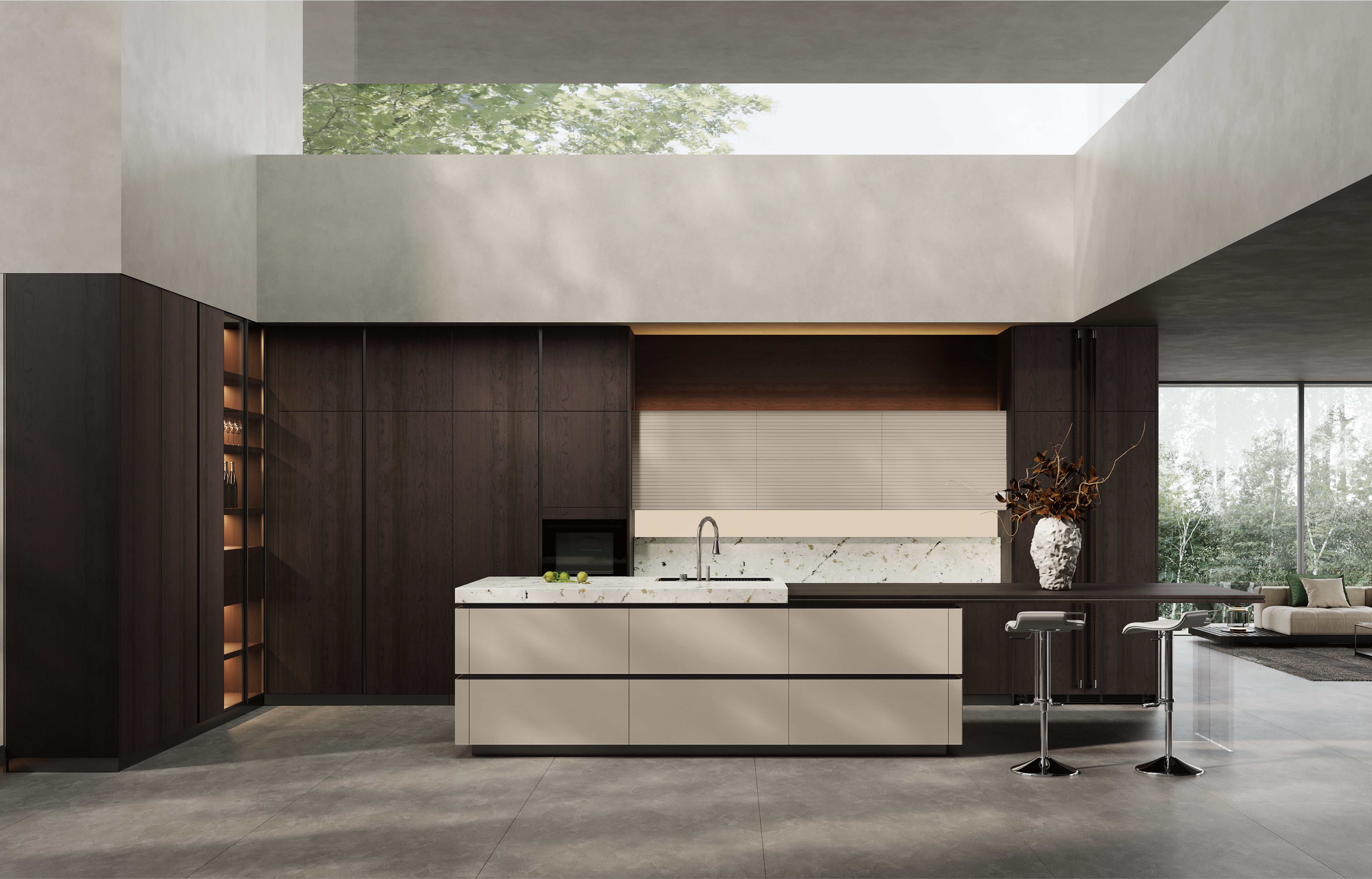 通过果博官网厨柜量体裁柜,定制出适合主厨下厨的烹饪区和洗涤区的舒适高度。
